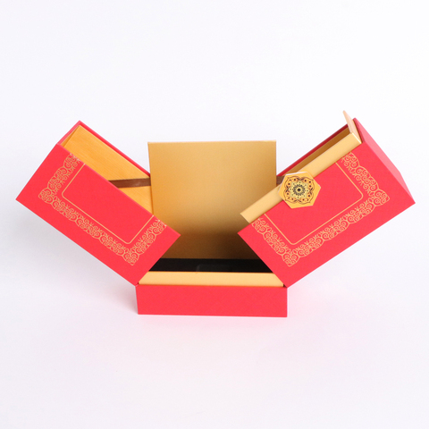 अनुकूलित डिजाइन चीनी शैली लाल लक्जरी कागज कठोर फ्लोडिंग पैकेजिंग डबल उद्घाटन उपहार बॉक्स